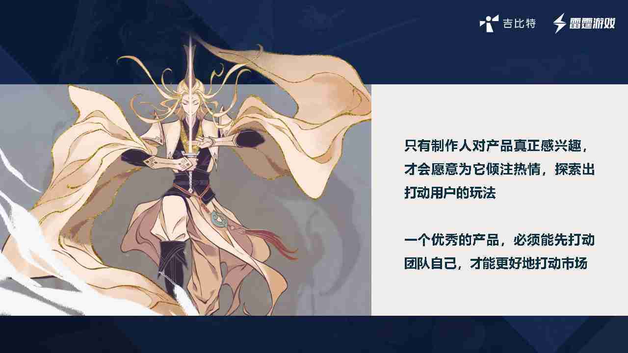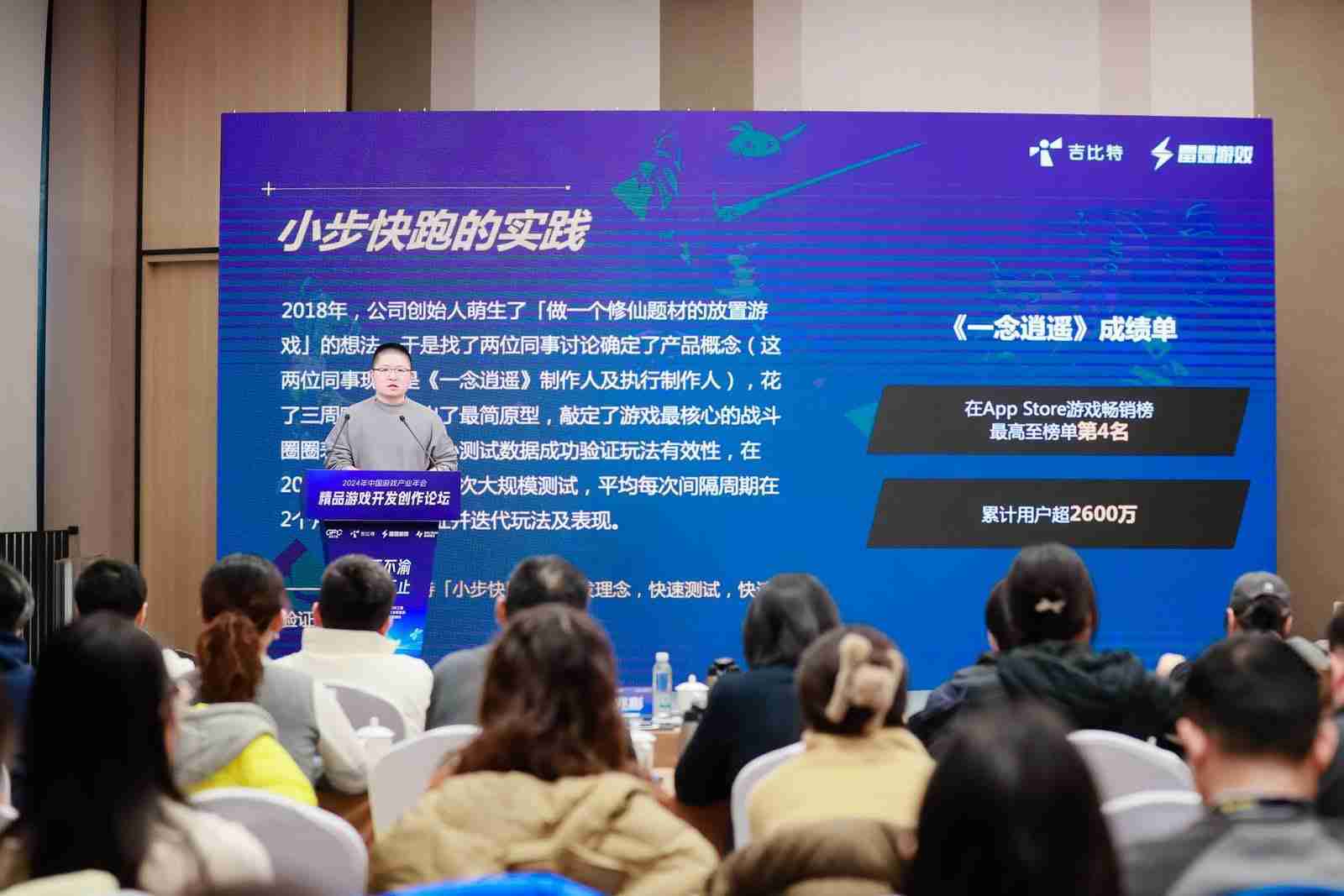 以《一念逍遥》为例,,,2018年公司创始人萌生想做修仙题材的放置游戏的想法,,,,于是找了两位同事讨论了一下产品的概念,,这两位现在是项目的制作人,,,花了三周的时间把原型做出来,,,,并且确定最初的战斗原型,,,以及整个养成的节奏。。通过几次版本迭代验证后,,,,也确定后面的内容应该怎么拓展,,,最终在一年左右时间这个项目上线了。。。当时我们内部有同事看到《⼀念逍遥》上线,,认为品质还不够完美,,,但是整体营收还不错。。就在想那是不是以后我们都做这样的产品????但实际这是错误的认知,,,我们内部不是这么看的。。。游戏在那个时间点上市,,,,因为有些市场的考量和营销点的考虑,,,并不是希望所有项目都是这样。。。。如果它有更好的契机,,希望它可以做得更大、、更好,,,,希望在内核玩法确定之后,,,外围投入可以越大越好,,所以后面的几个项目是往这个思路上做。。。
