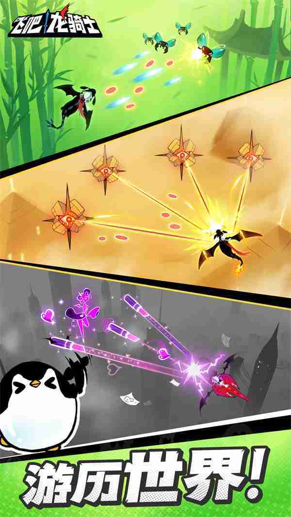 《飞吧龙骑士》是一款集合了飞行弹幕射击、、、Roguelike要素和挂机养成的休闲手游,,,极具创意的吞食子弹反击玩法,,突破传统飞行射击的刻板限制,,,,带来了独特的爽快清屏体验。。。。